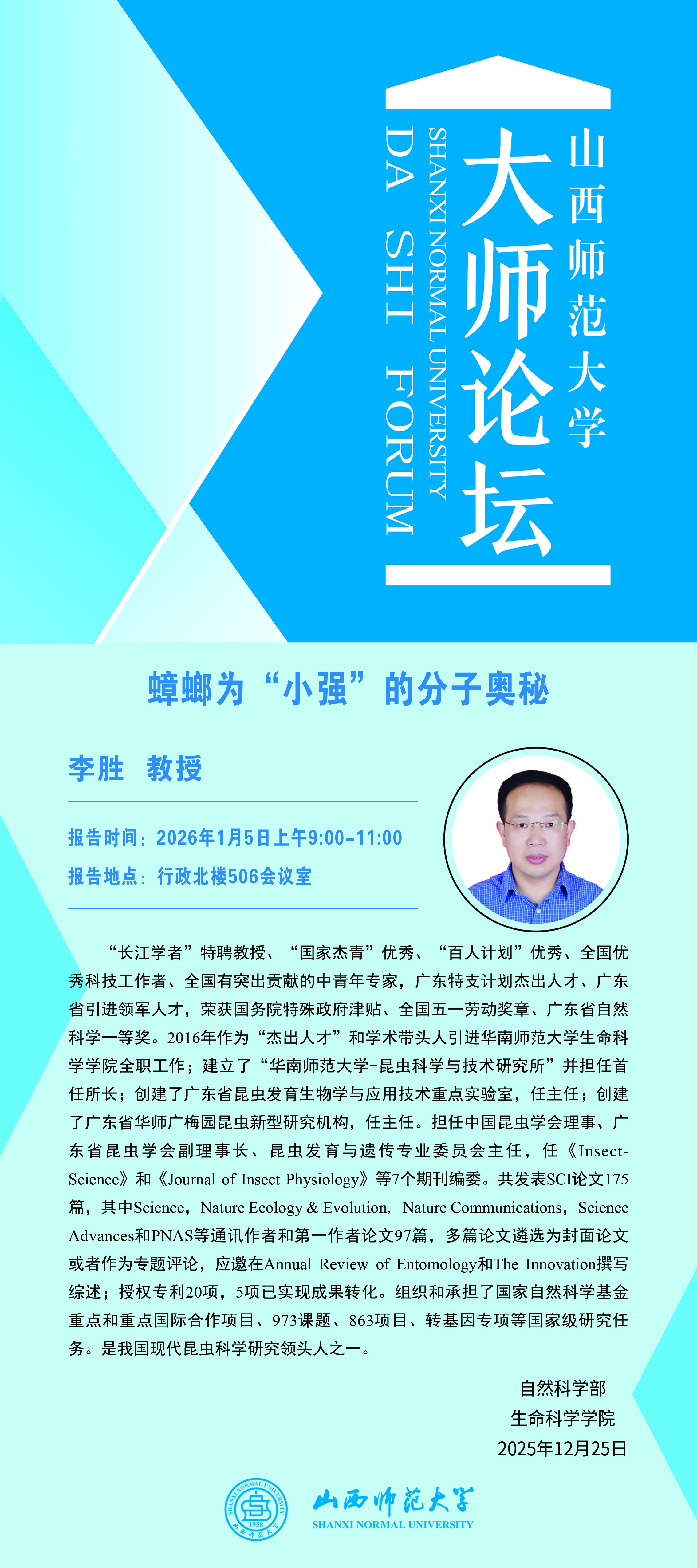 【大师论坛】华南师范大学李胜教授应我校邀请作学术报告